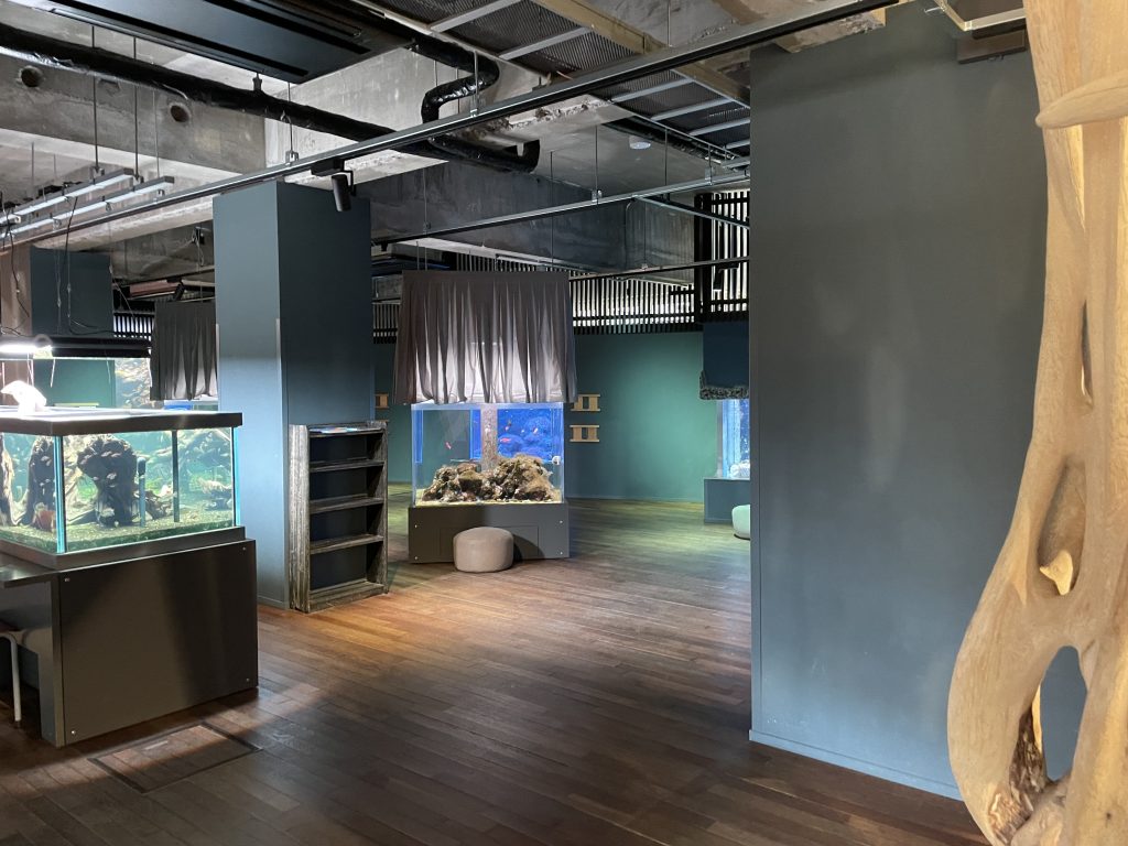 そこはちょっとくつろぎながら水槽を眺められるスペースでした。
