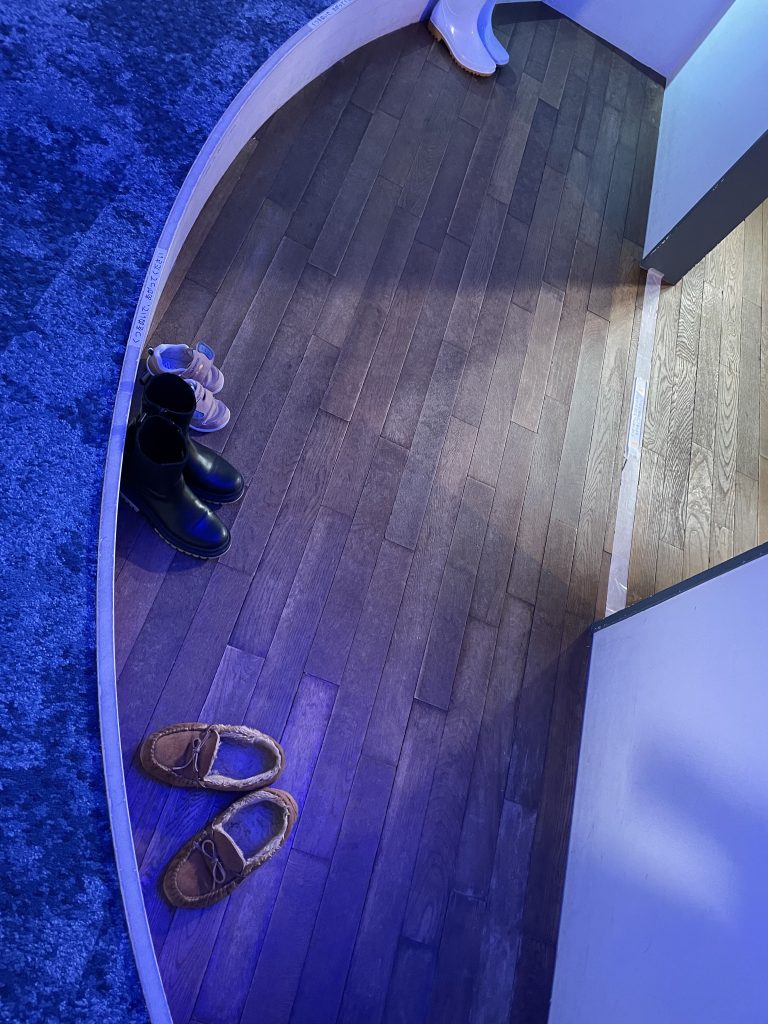 途中に靴を脱ぐスペースがあり、